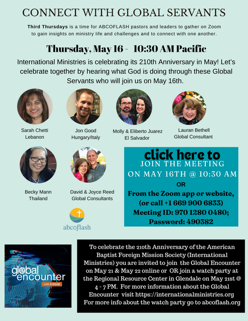 You Are Invited to connect with Global Servants May 16 at 10:30 AM (Pacific Time)